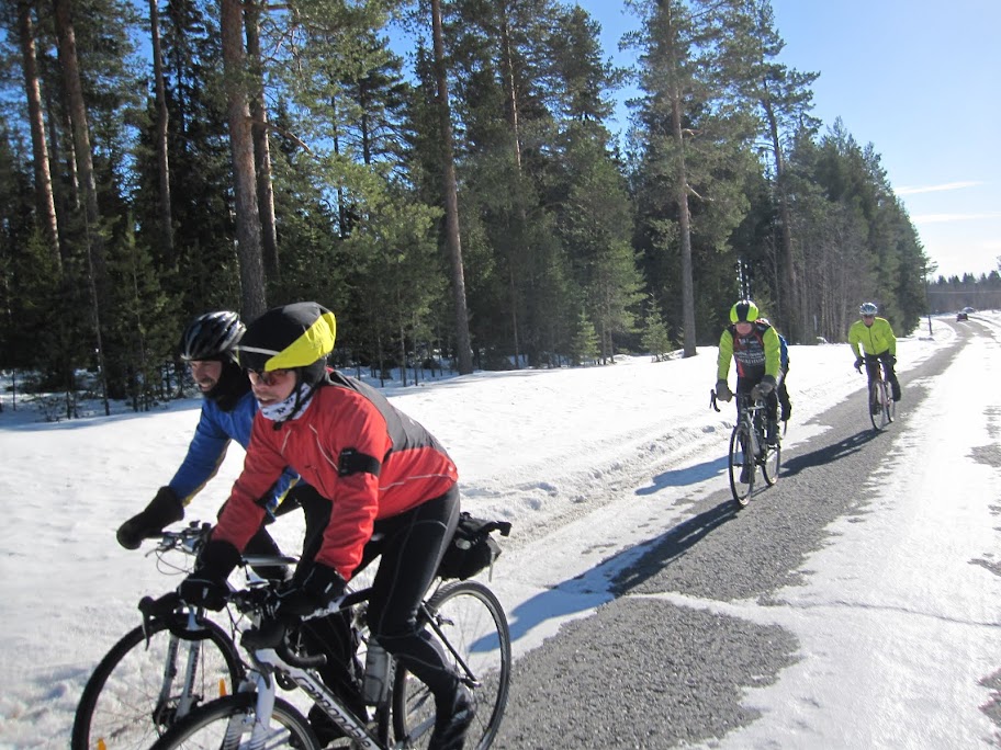 Se män tämä viikonloppu näin; 307km, yli 10 000 kcal kulutettu outokummun rakennusaineita, joita ei korvattu täysin. Naamassa tuntuu siltä, että tämä sisäilmainsinööri nautti aikasta paljon ulkoilmaa. Polari ehdottelee kolmea lepopäivää, koitetaan pitää siittä kiinni. Huomenna pitää huoltaa cännäriä, pestä se ja säädellä takavaihtajan toimintaa. Sinkulaan voisi laittaa lokarit kiinni ja siirtää cännärin etukiekko siihen, että voi sinkulalla jatkaa arkipyöräilyä jäisillä teillä. Cännärin voisi muutenkin pistää vähäksi aikaa tauolle odottamaan maantiekelejä. Seuraava pitkä lenkki ajetaankin vasta huhtikuussa, mitä sitä vaan pääsiäisenä tekisi?